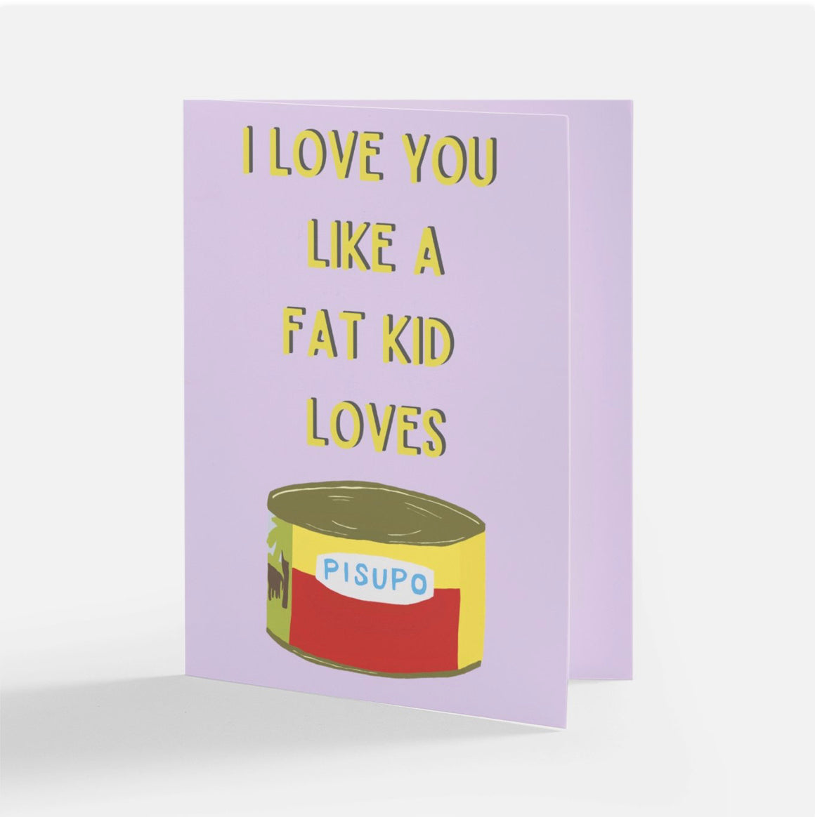 PREMIUM ‘I love you like a fat kid loves Pisupo’ Card and Matching Envelope